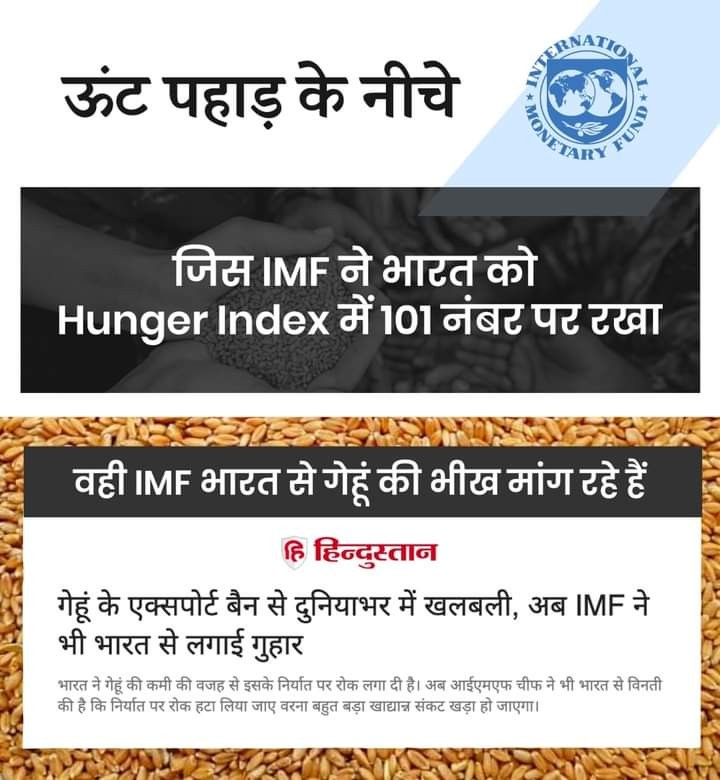 #अमेरिकी एजेंसियां हर इंडेक्स में भारत को सबके नीचे रखती थी आज वही भारत से हर चीज़ की भीख मांग रही है। #कोरोना में #हायड्रोक्लरोकिन मांगी, फिर वैक्सीन, अब चावल और गेहूं मांग रहा है। सारे भारत विरोधी प्रोपेगेंडा फेल हो गए हैं। कोई भी ईसाई या मुस्लिम देश किसी के काम नहीं आ रहा है।