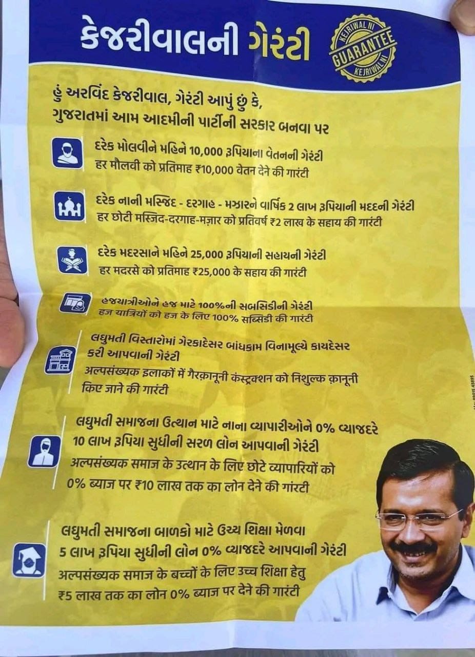 #AAP_पार्टी ने ये #गारंटी_कार्ड #Gujarat के #Mu $lim इलाकों में वितरित किए हैं।👇👌