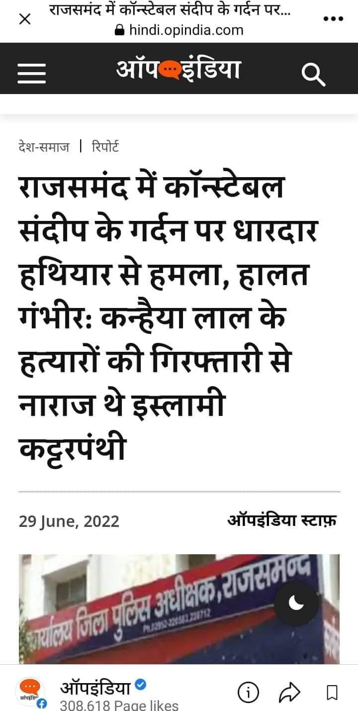 कन्हैया के बाद #कांग्रेस_पोषित #वोट_बैंक का नया #कारनामा ये हुआ कि #राजसमंद के #भीम_थाना जहाँ वो दोनों #हत्यारे #गिरफ्तार कर के लाये गये थे। वहां की #मुस्लिम भीड़ ने #थाने पर हमला बोल कर फिर एक और बार #कांस्टेबल सन्दीप की गर्दन पर वार किया।