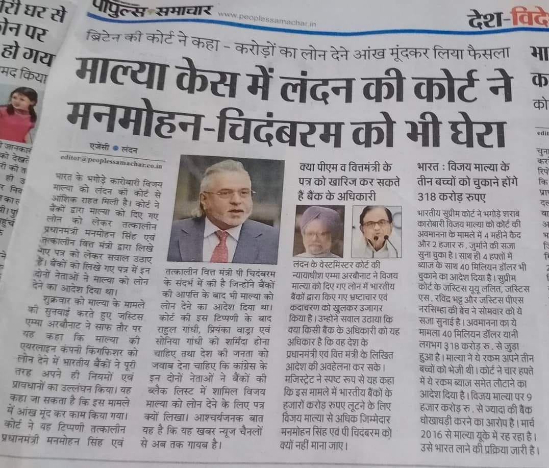 #लंदन की #कोर्ट ने कहा - #बैंकों की #आपत्ति के बाद भी तत्कालीन #PM #मनमोहन_सिंह और #पी_चिदम्बरम ने #विजय_माल्या को #लोन देने का आदेश दिया था और पत्र भी लिखा था।