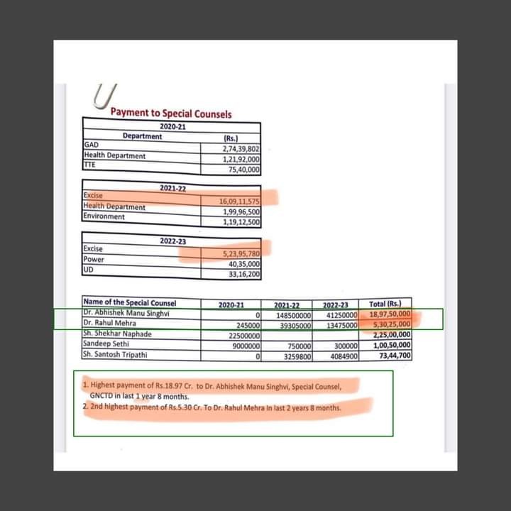 करीब ₹21.50 करोड़ तो सिर्फ शराब नीति के केसों के लिए वकीलों को गया है, तो सोचो घोटाला कितना बड़ा होगा। यह दिया गया पैसा उनकी कमाई का नहीं बल्कि जनता के टैक्स का हैं।