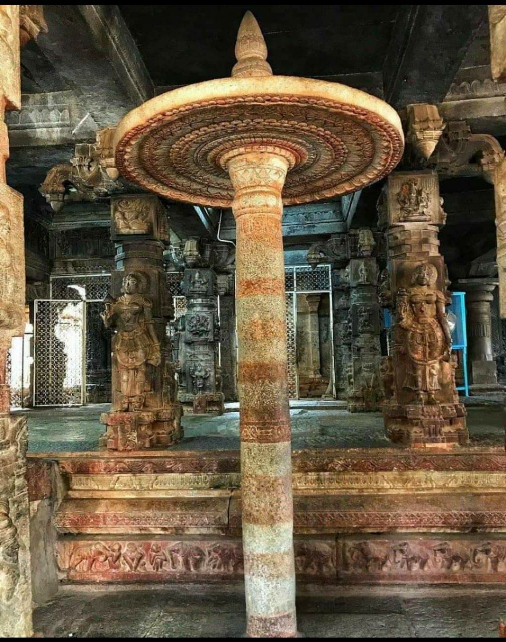 मंदिर के अंदर प्रतिष्ठित इस पत्थर की छतरी को देखिये, यह छतरी पत्थरों को जोड़कर नहीं बनी है बल्कि यह सम्पूर्ण छतरी केवल एक ही पत्थर को काटकर बनाई गयी है । सबसे रोचक बात यह है कि इसे आज से लगभग 1100 साल पहले बनाया गया है।