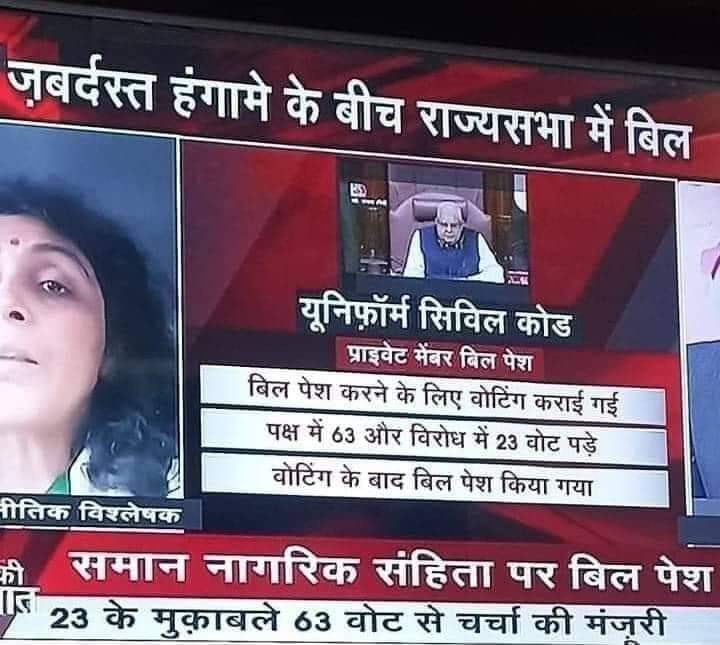#मोदी_जी का #यूनिफॉर्म_सिविल_कोड बिल #राज्यसभा में पेश हो गया है...!