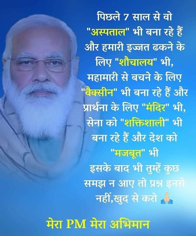 इसी को हिंदी मे कहते हैं 56 इंच मोदी जी इस काम में इसी लिए सफल हो सके क्योंकि, मोदी जी को फिर से चाय बेचना मंजूर है लेकिन दोगले नेताओ की तरह देश बेचना नहीं।