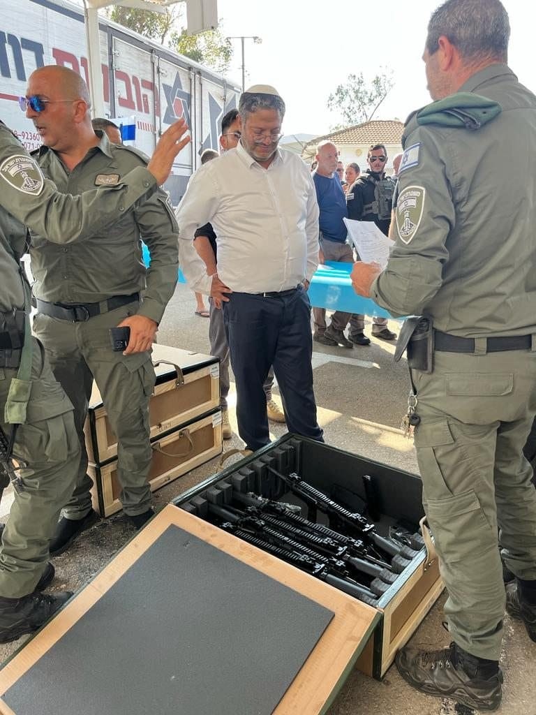 To attack and kill Palestinians.. Israeli Minister of National Security Atmar Ben Guerr distributing weapons and ammunition to settlers in the West Bank.