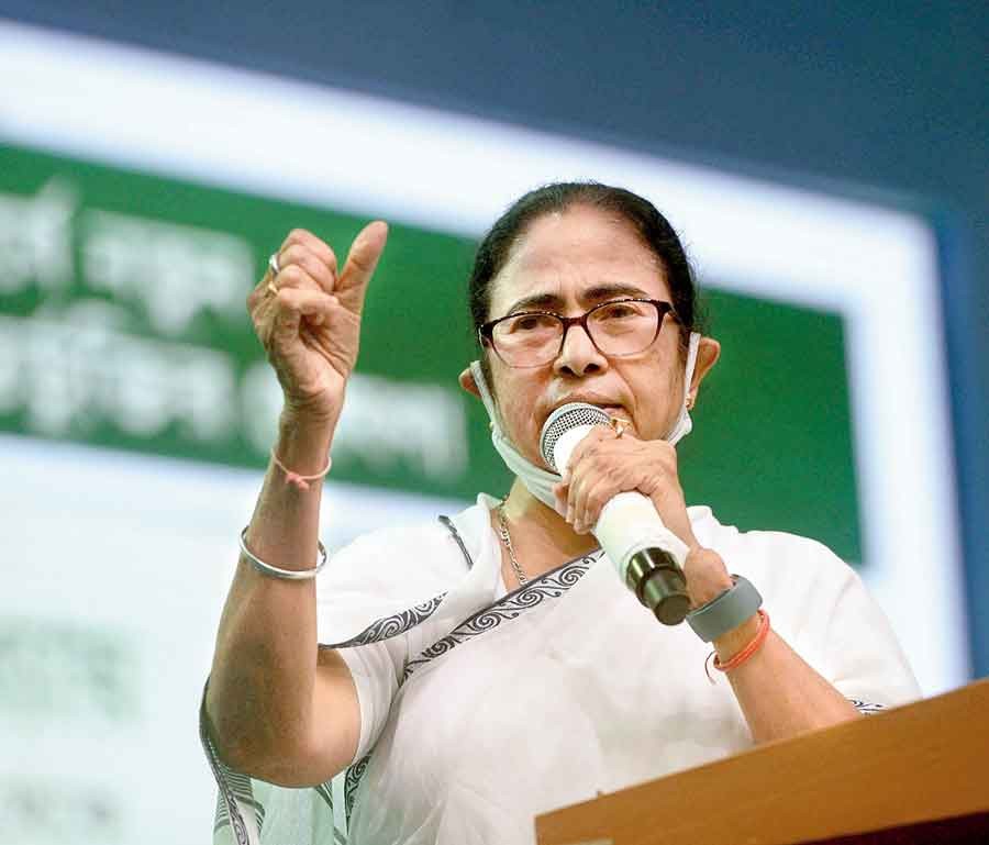 West Bengal CM Mamata Banerjee at the site of her 'dharna' in Kolkata.