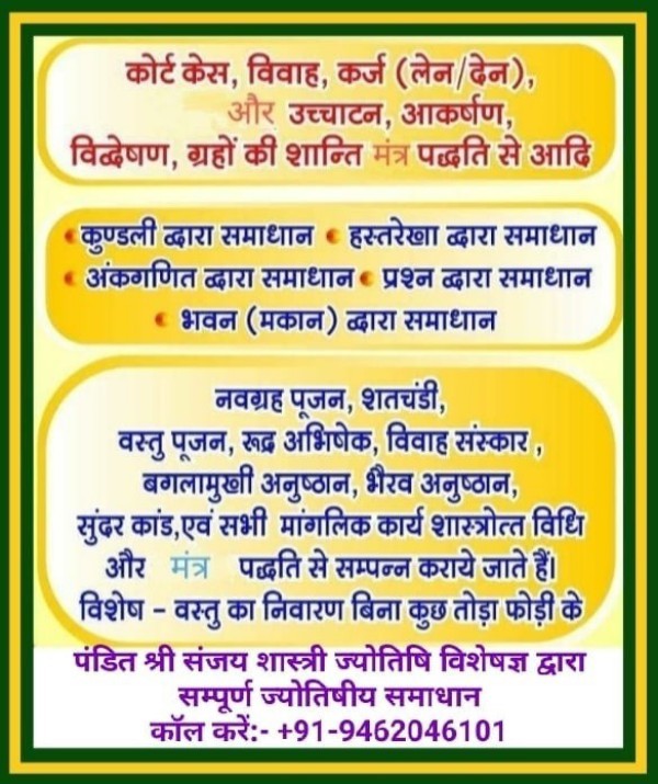 Whosoever has the knowledge, he should solve the problem with Pandit SK. Shastri ji. Talk in any language: - Hindi, English, Punjabi, Rajasthani, Gujarati, Marathi, and Arabic language !!